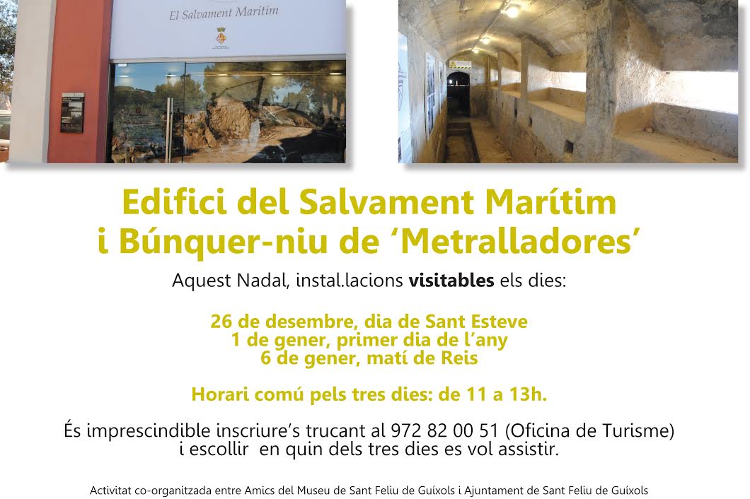Aquest Nadal es pot visitar l’edifici del Salvament i el Búnquer-Niu de Metralladores que hi ha al promontori dels Guíxols, en virtut d’un acord a què ha arribat l’Ajuntament amb l’Associació d’Amics del Museu d’Història.