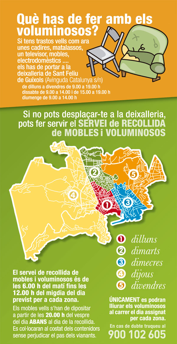 Share on Facebook Follow on Facebook Add to Google+ Connect on Linked in Subscribe by Email Print This Post Quadre gràfic que indica què cal fer amb els trastos… portar-los a la Deixalleria. En cas de no poder, aquí hi ha els dies i zones de recollida al carrer. Màxim: set peces per veí. Què cal fer amb els trastos vells? added by Redacció on 16/04/2015View all posts by Redacció →