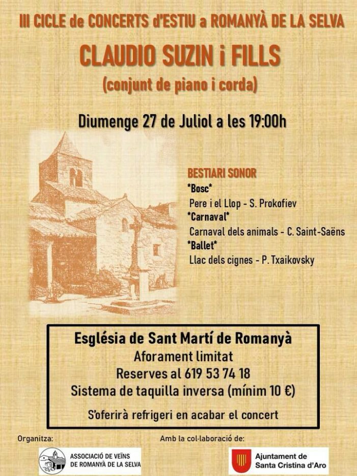 El 25 de maig el Cor de la Capella Musical de la Porta Ferrada, de Sant Feliu de Guíxols i la coral “Unda Maris”, de Gràcia varen inaugurar, amb un cant coral, el III cicle de concerts d’estiu que organitza l’Associació de veïns de Romanyà de la Selva. El 15 de juny el cicle va […]